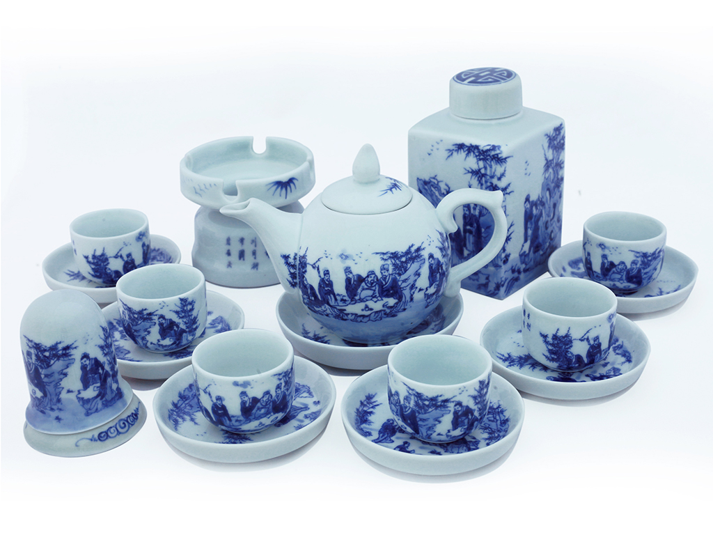 Ấm chén Bát Tràng men lam Trúc Lâm Thất Hiền chóp lửa đầy đủ phụ kiện phù hợp là món quà tặng, quà biếu tinh tế và đầy ý nghĩa đến người thân, bạn bè, đồng nghiệp…