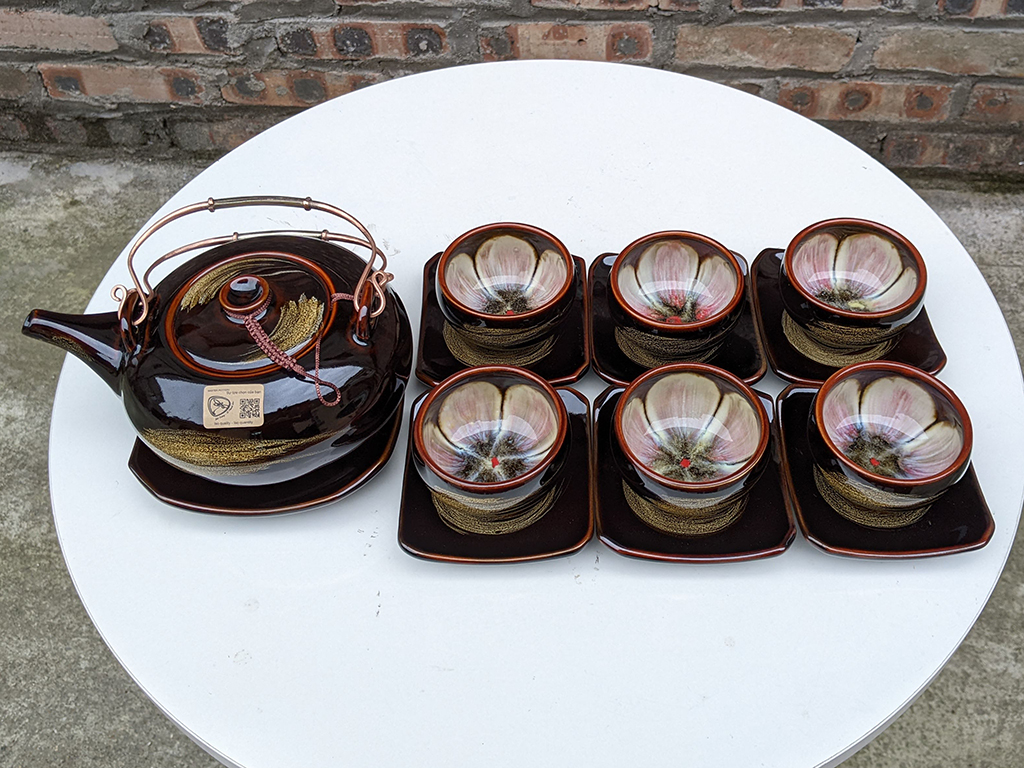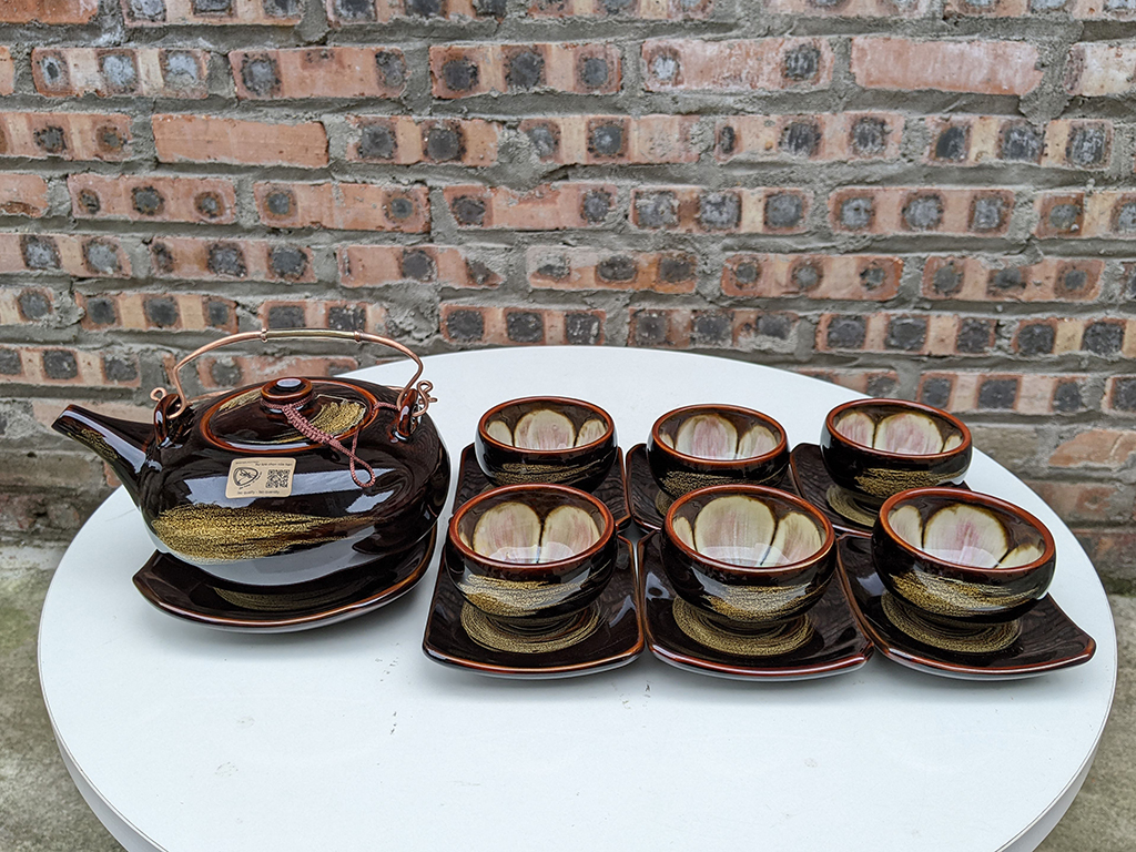 Ấm chén men hỏa biến phẩy dáng giang tây