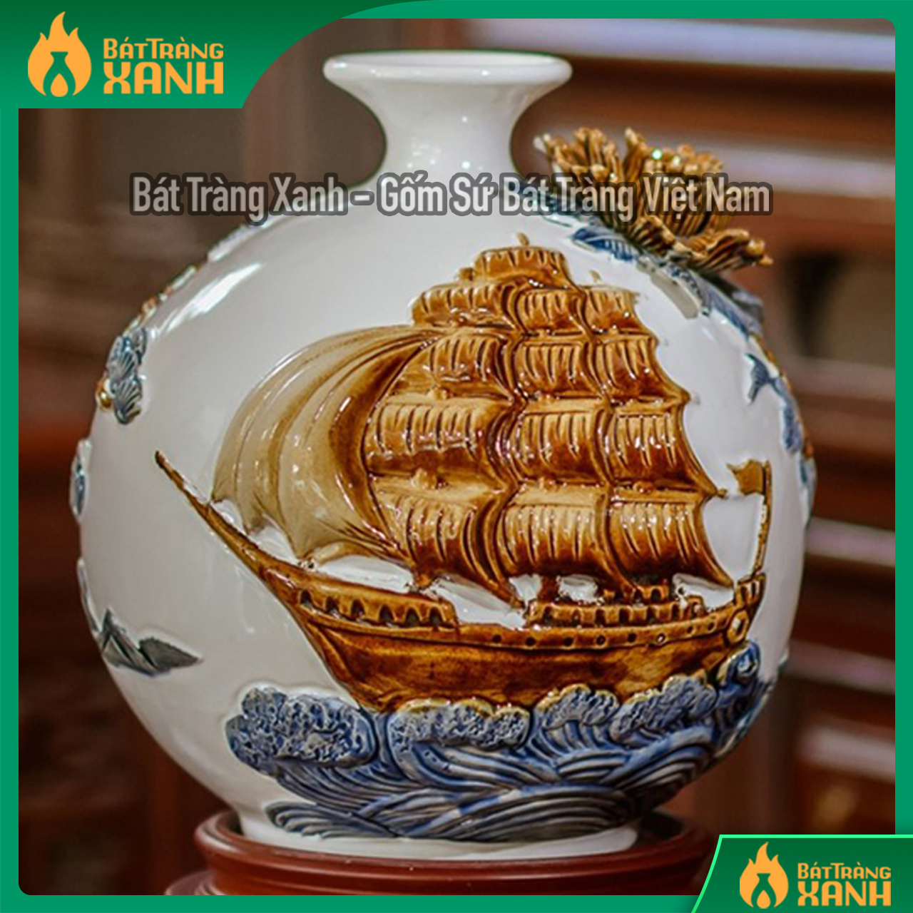 Bình hút lộc đắp nổi Bát Tràng Thuận Buồm Xuôi Gió 21cm