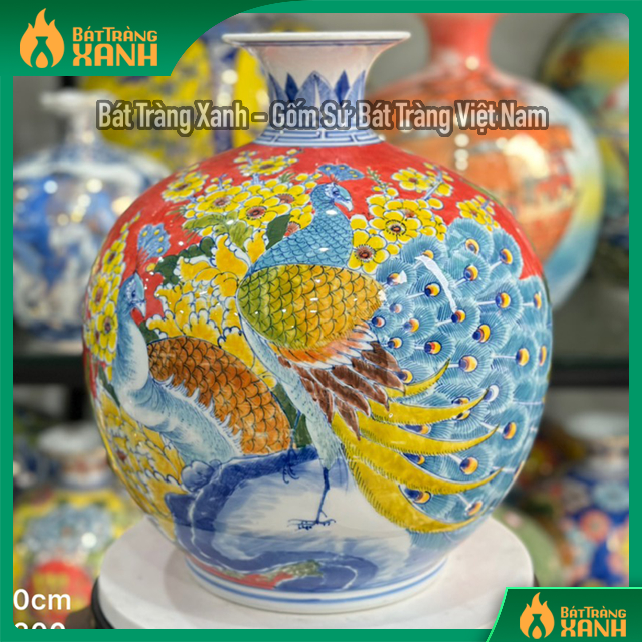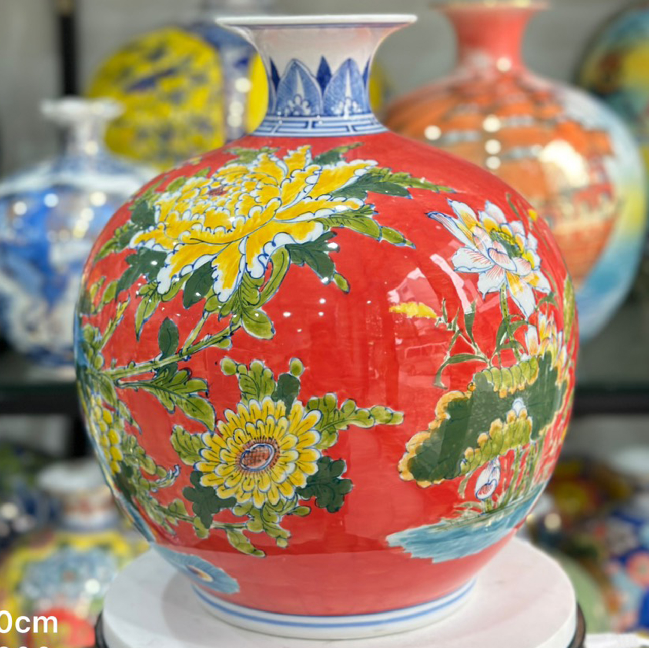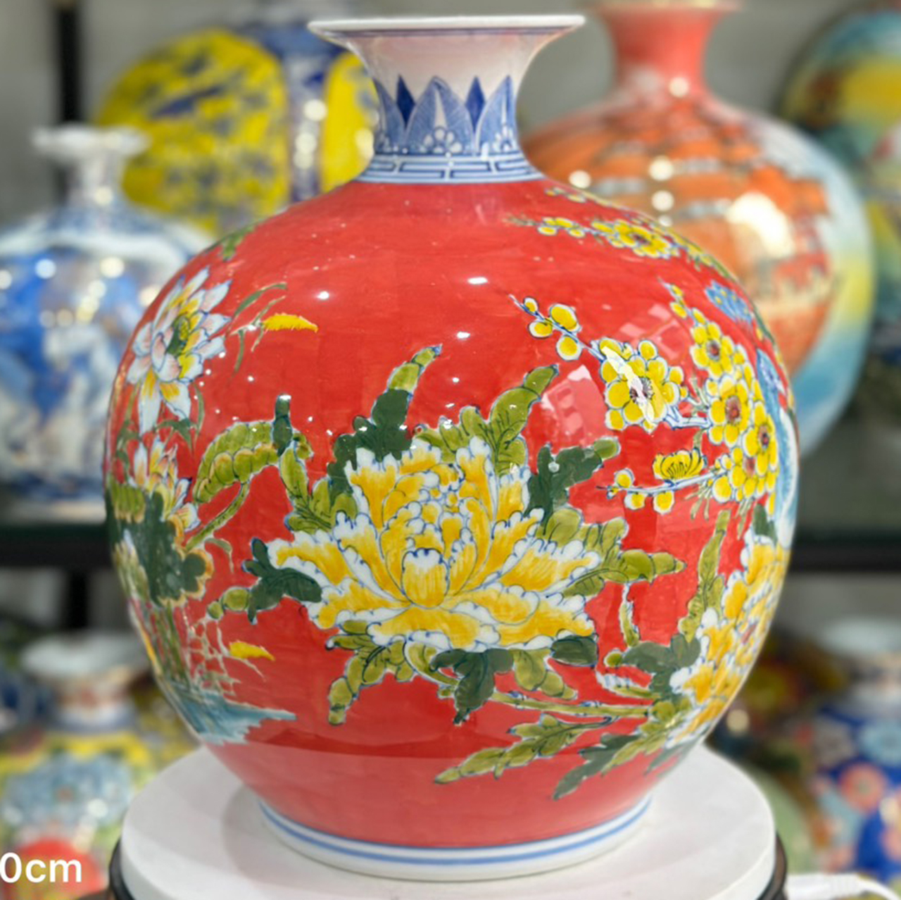 Bình hút lộc đỏ Bát Tràng vẽ Công Hoa