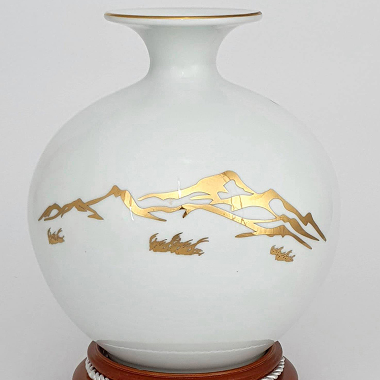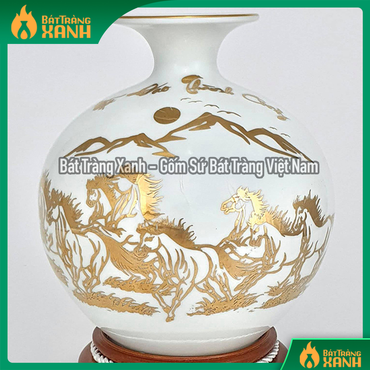 Bình hút lộc màu trắng mệnh kim vẽ vàng Mã Đáo Thành Công