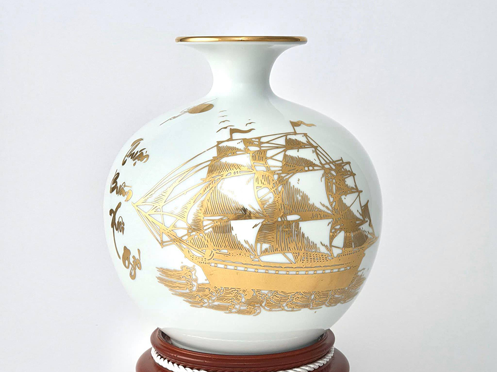 Bình hút lộc vẽ vàng kim “Thuận Buồm Xuôi Gió” màu trắng