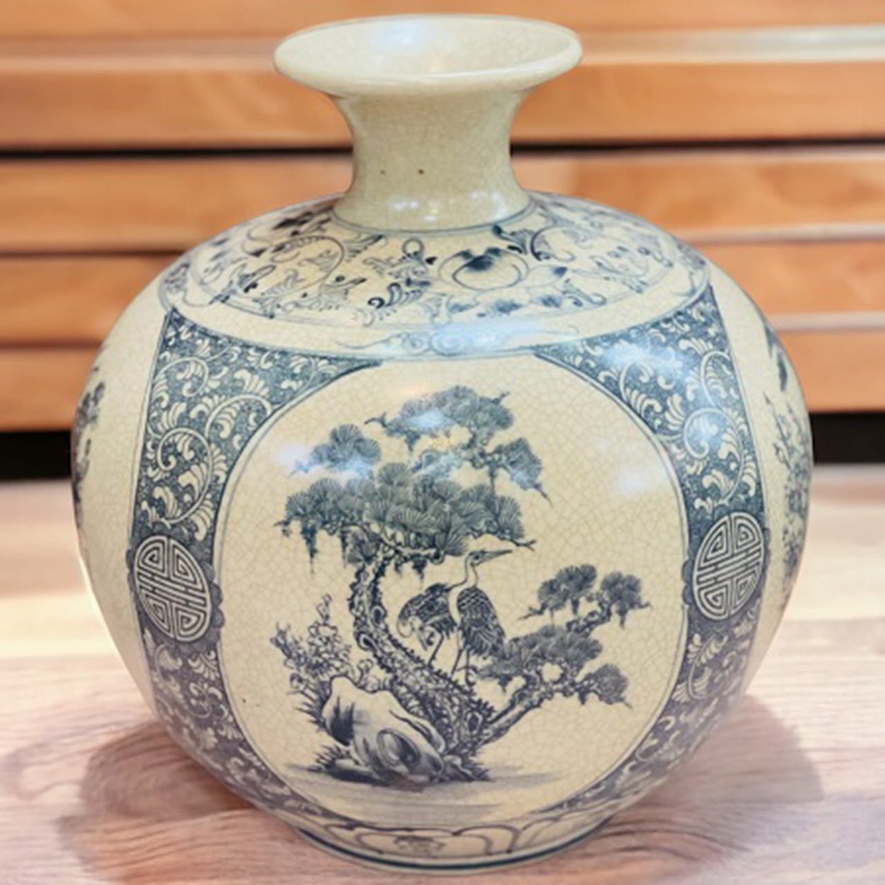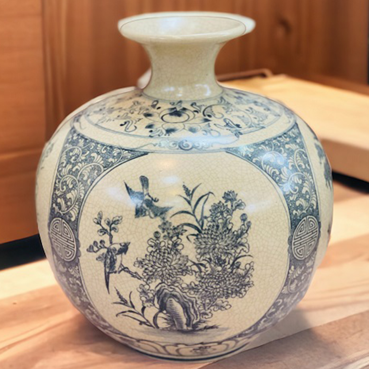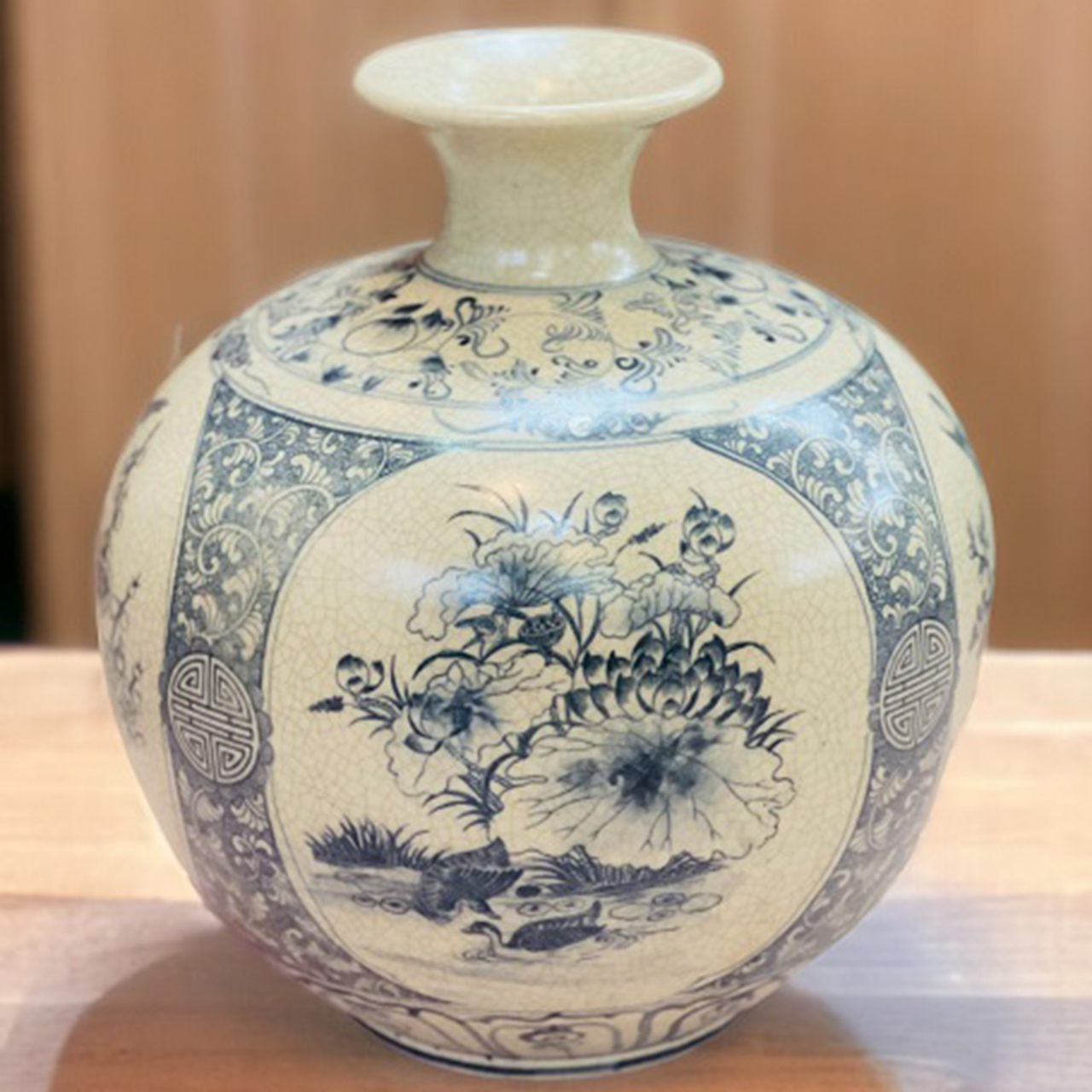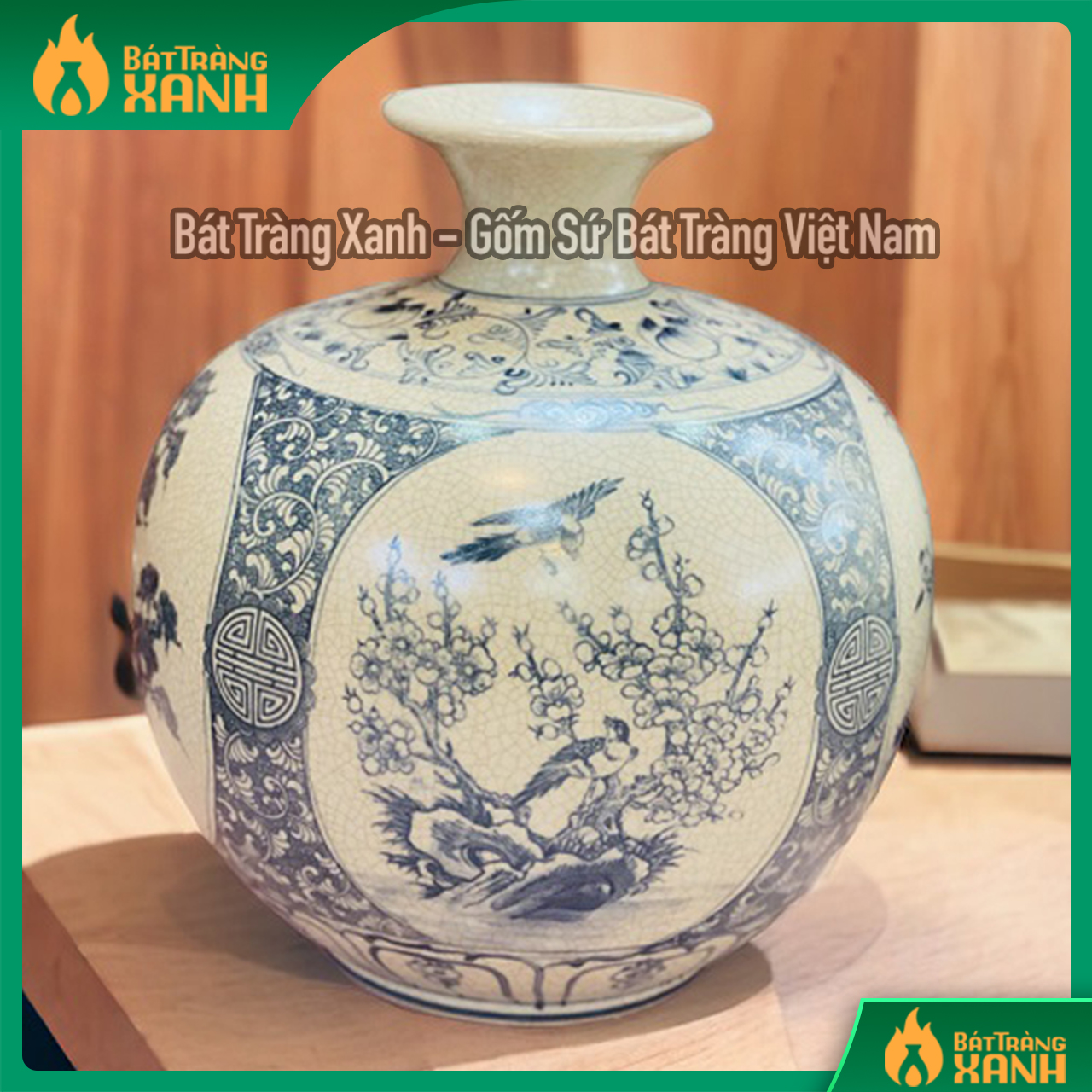 Bình hút lộc men chàm vẽ hoa bốn mùa
