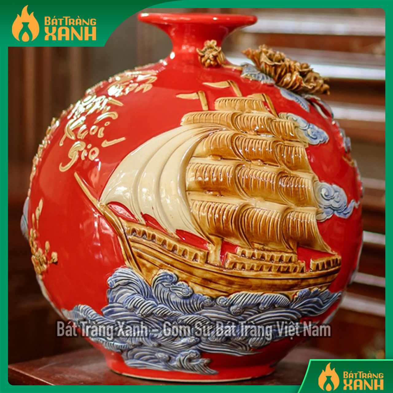 Bình hút lộc mệnh hỏa đắp nổi Thuận Buồm Xuôi Gió 30cm