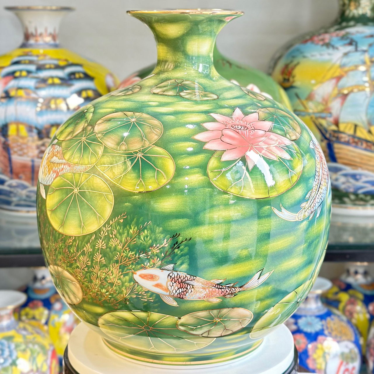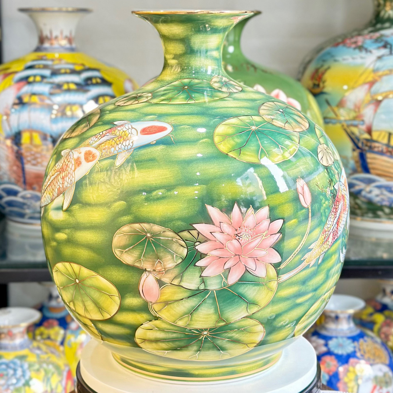 Bình hút tài lộc Cá Chép Sen Phú Quý