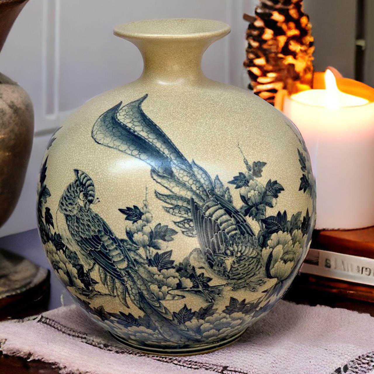 Bình hút tài lộc Hoa phù dung chim trĩ