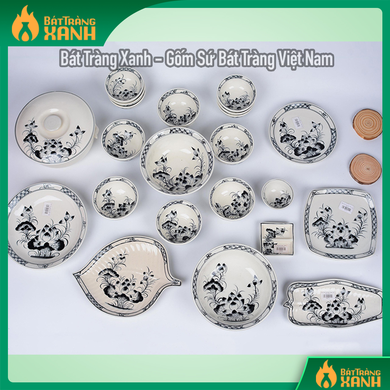 Bộ bàn ăn vẽ hoa sen đen 22 sản phẩm