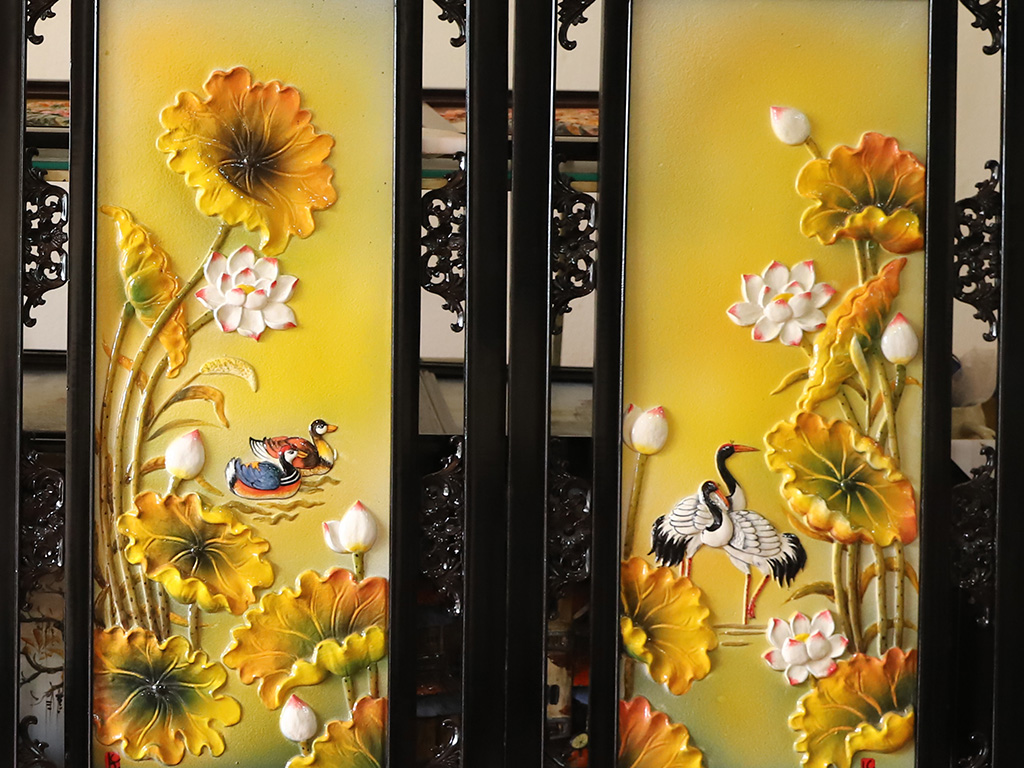 Tranh tứ cảnh sen vàng cao 100cm rộng 50cm